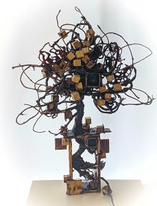 Entourée de ses outils et de son matériel de base, Mélanie sculpte la matière, dans sa fluidité et ses cassures, dans ses textures et ses infinies possibilités. À la cire s’ajoutent bois, laine, corde, ouate, papier, épices, sapinage… Autant de matériaux qui viennent appuyer son processus créatif et son exploration de la forme, et qui seront réduits en cendres lors du décirage. Au final, un arbre en bronze, au caractère unique et singulier, écho de sa propre essence.